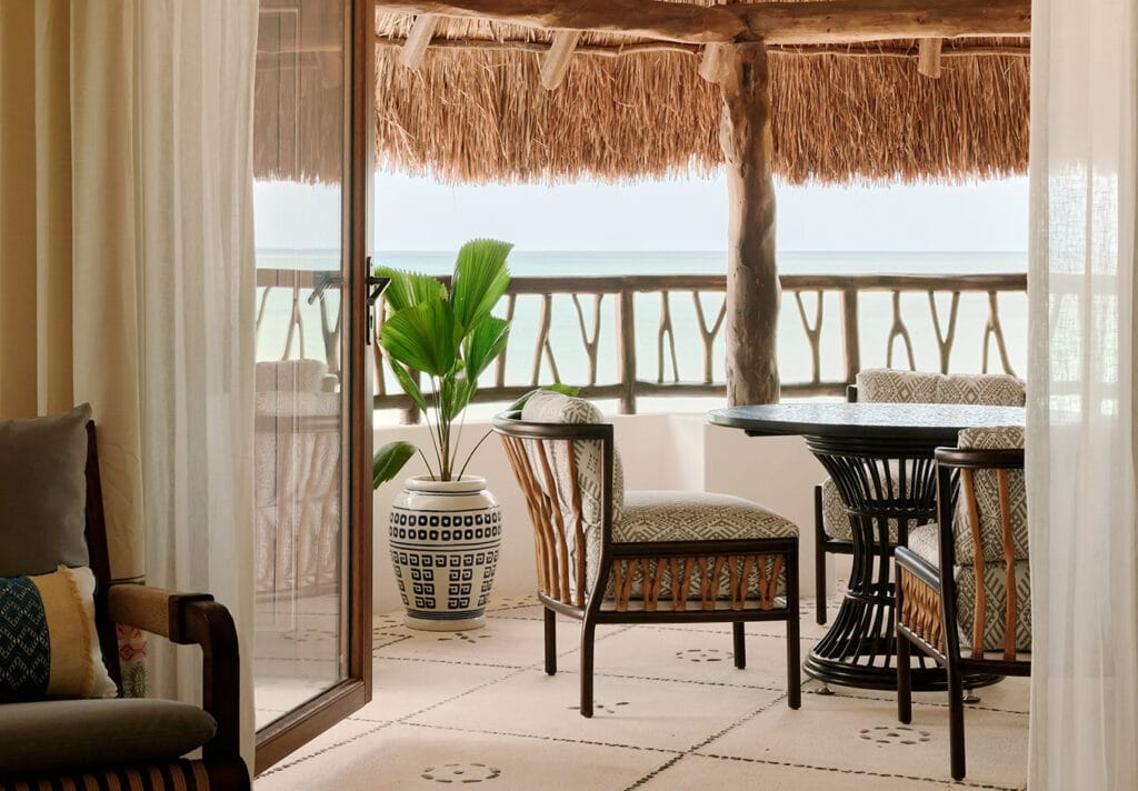 Las hermosas habitaciones y suites con nuevos diseños en Maroma honran las tradiciones artesanales mexicanas y la auténtica artesanía. Disfrute de su relajante estancia exuberante, que combina toques lujosos con tesoros mexicanos. Olvídese de las preocupaciones en su cama tamaño king. Abra las puertas de la terraza de par en par y disfrute el sonido de las olas. Saboree un coctel mientras el sol ilumina los frondosos jardines tropicales.