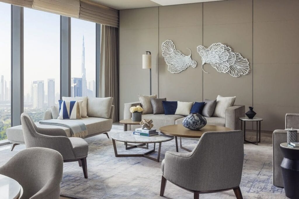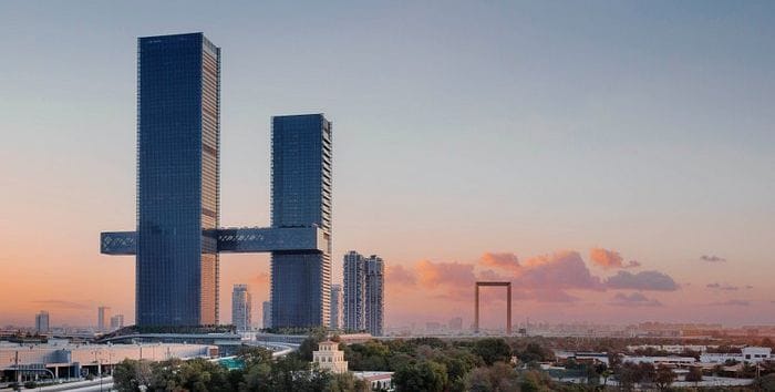 Con una arquitectura impresionante y vistas panorámicas de los rascacielos de Dubai y el horizonte, el hotel cautiva a los visitantes desde el momento en que llegan. Una impresionante obra de diseño revolucionario de los aclamados arquitectos Nikken Sekkei, la obra maestra de dos torres redefine el horizonte de Dubai, enmarcando vistas de 360 grados de brillantes rascacielos, verdes parques y trascendentales puestas de sol.