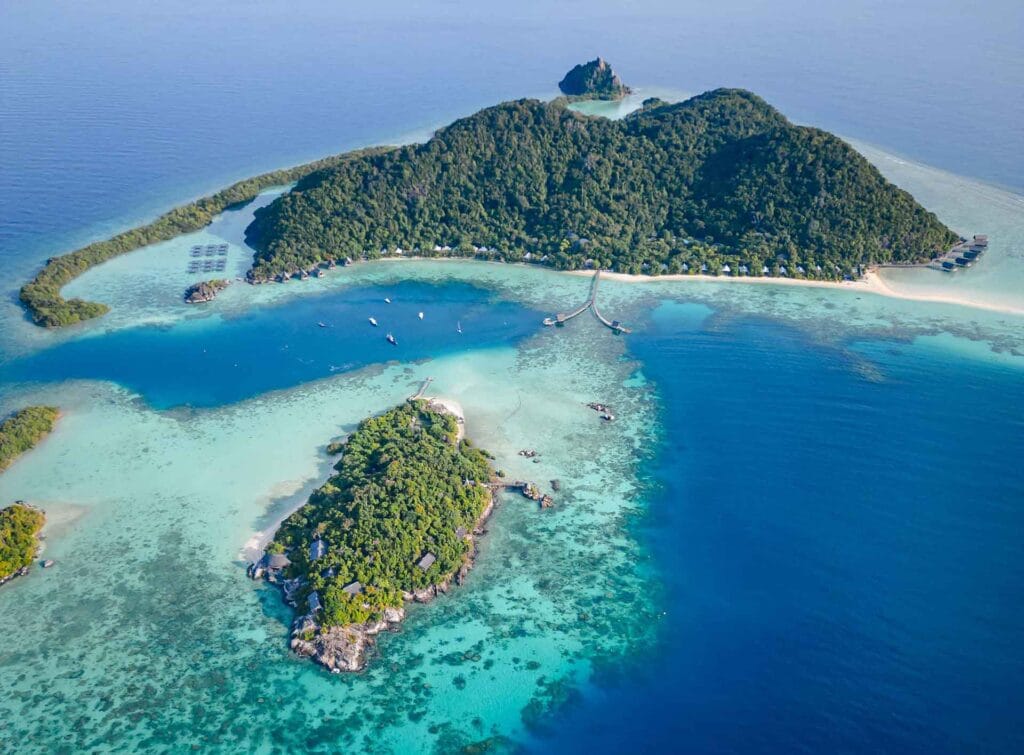Y para quienes buscan la máxima privacidad y exclusividad, existe la opción de alojarse en Elang, una de las seis islas de Bawah. Elang es una isla privada que cuenta con seis impresionantes lodges situados en acantilados, todos a su disposición. A solo unos minutos en barco desde el muelle principal de la reserva, esta isla boutique ofrece un oasis de tranquilidad con servicio de mayordomo privado, gastronomía personalizada, zona de actividades, spa y bienestar.